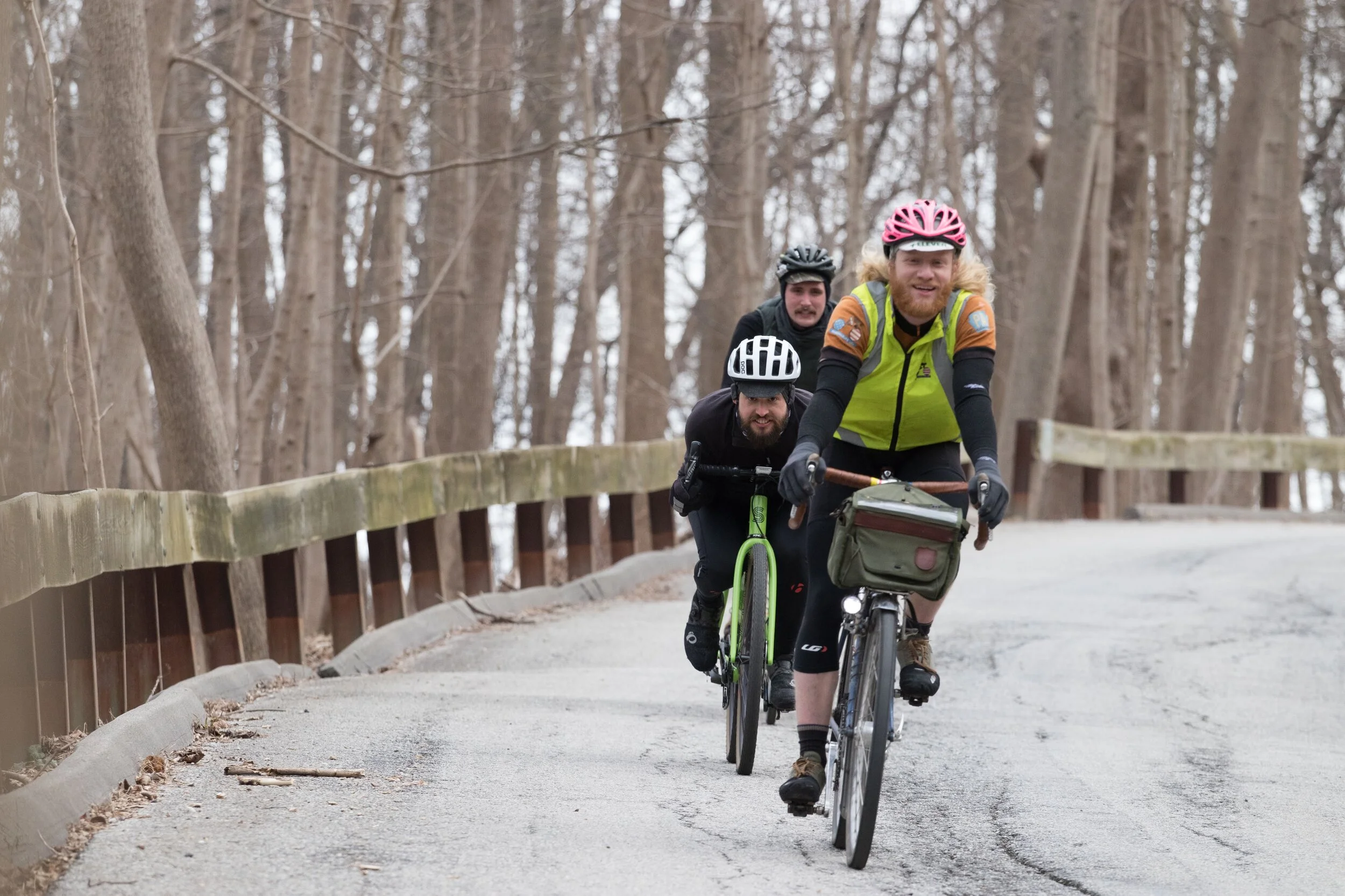 Nick, Gary and Ryan cruising down from one of the 12 ascents of the aptly named Dozen Rose Glens (put on by Team Laser Cats) ride this February.