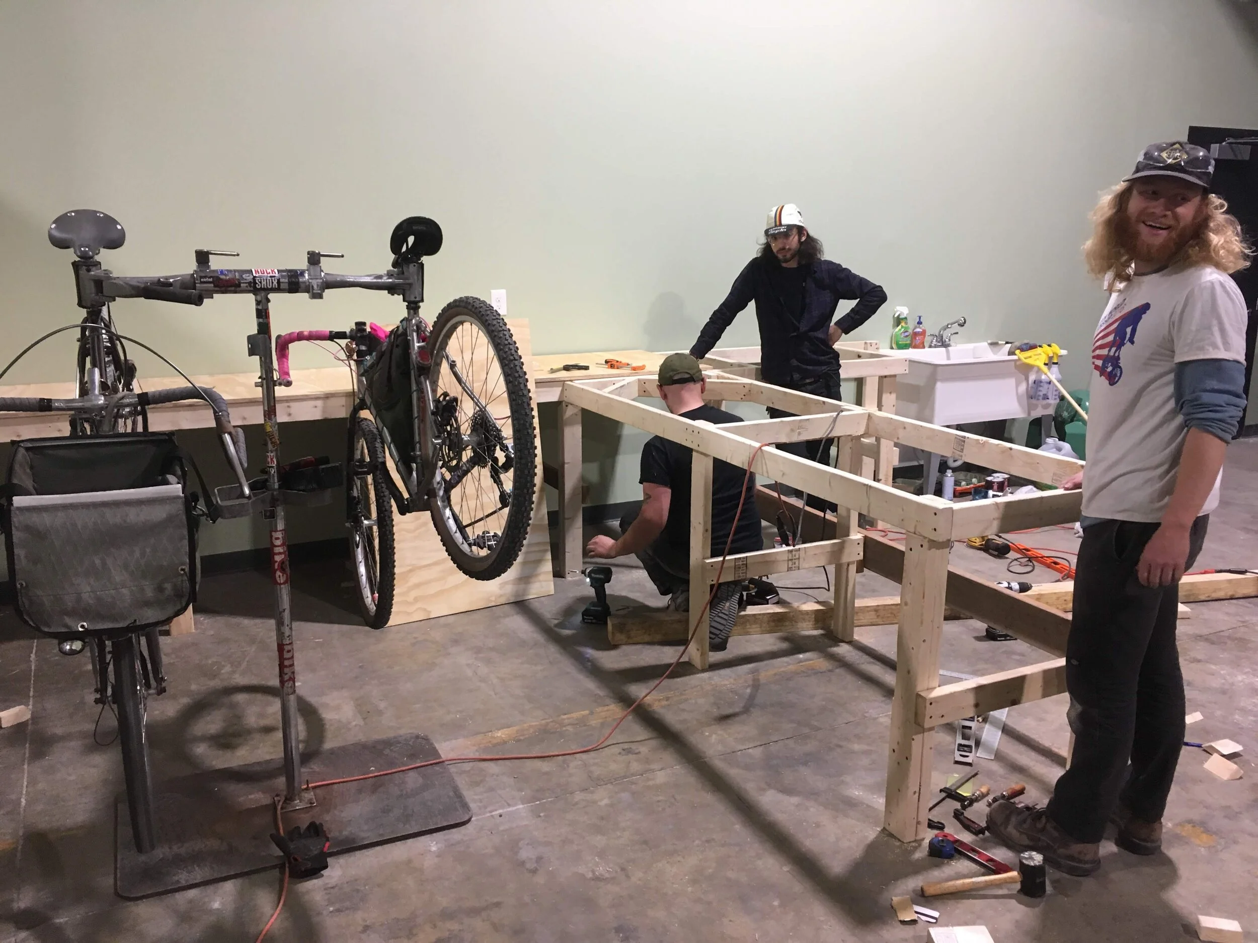 Nick, Zack and Ryan mocked up our repair stands before attaching the final bench.